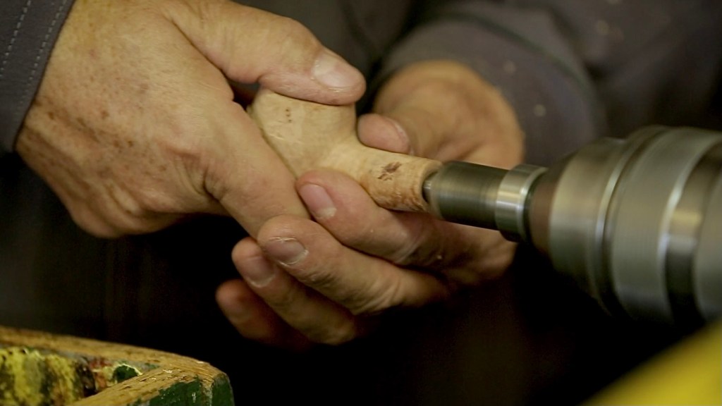A közel 60-70 fázisból álló folyamat első lépésként a léceket hasábokra vagdossák, ezekből a hasábokból lesz majd a pipafej. A lényeg, hogy a hibák kiejtése mellett minél több használható anyag maradjon.