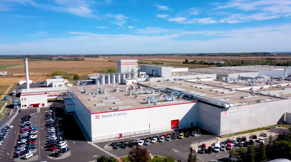 A Purina üzeme ultramodern és szinte teljesen automatizált. A hőkezelést követően a tasakokkal teli tálcákat például futurisztikus robotkarok pakolgatják egymás keze alá dolgozva a betáplált program szerint ide-oda.