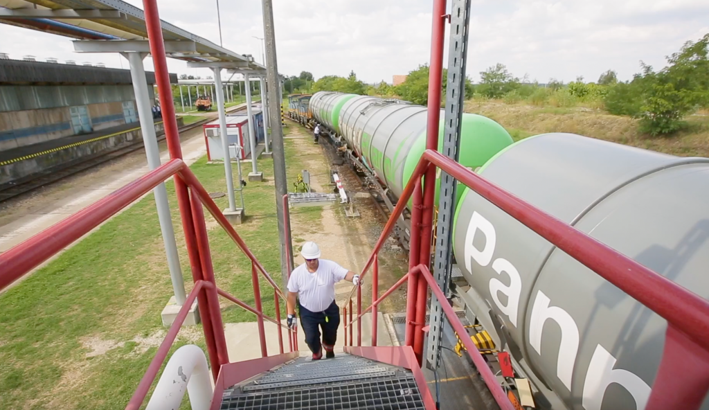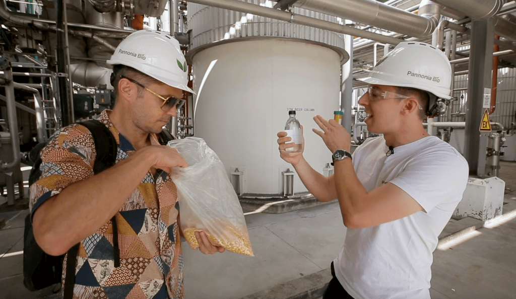 Dunaföldváron, a Pannonia Bio üzemében néztem meg a bioetanol gyártás folyamataitt. Európán belül ezen a telephelyen termelik a legnagyobb mennyiségű bioetanolt, évi 510-550 millió litert. Ennél nagyobb, hasonló profilú üzem csak az USA-ban található.