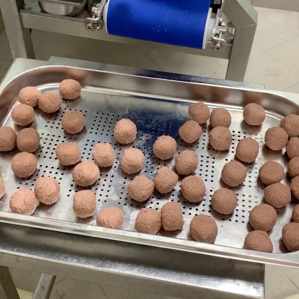 Onnantól, hogy az alapanyag bekeverésre került, a kimenetelek száma már végtelen. A vegán “húspépből” lehet golyót formázni, le lehet darálni, de készülhet belőle rántott szelet is. Ez utóbbihoz egyébként van egy nagyon menő panírozó gép is az üzemben. (A panír is természetesen vegán alapanyagokból készül).