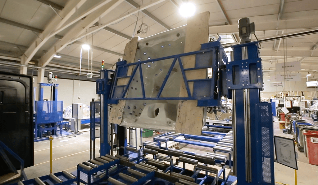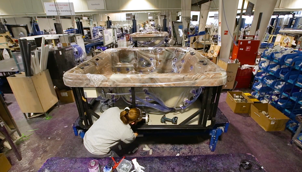 Mivel a szerelősori műveletek a fúvókák, vízcsövek szerelésével indulnak, ezek pedig a külső burkolat és a kád között, azaz nem látszó részeken találhatók, a jakuzzik a szerelősoron “fejjel lefelé” indulnak el.