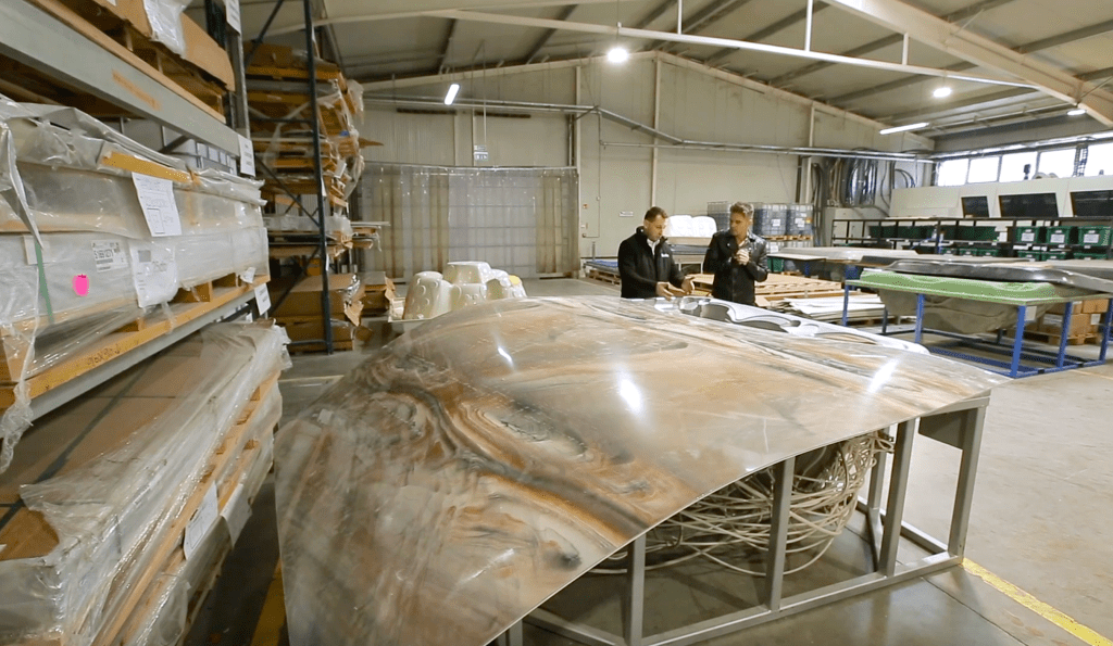 A jakuzzi legfontosabb része természetesen a “kád”, a medence. Ez az, ami üresen látszik és ebbe ülünk, amikor tele van vízzel. A kád gyártása egy négyzetes akrillapból indul, ezt helyezik rá a egy fém vákuumszerszámra. (A vákuumszerszám lényegében a medencét mintázza.)